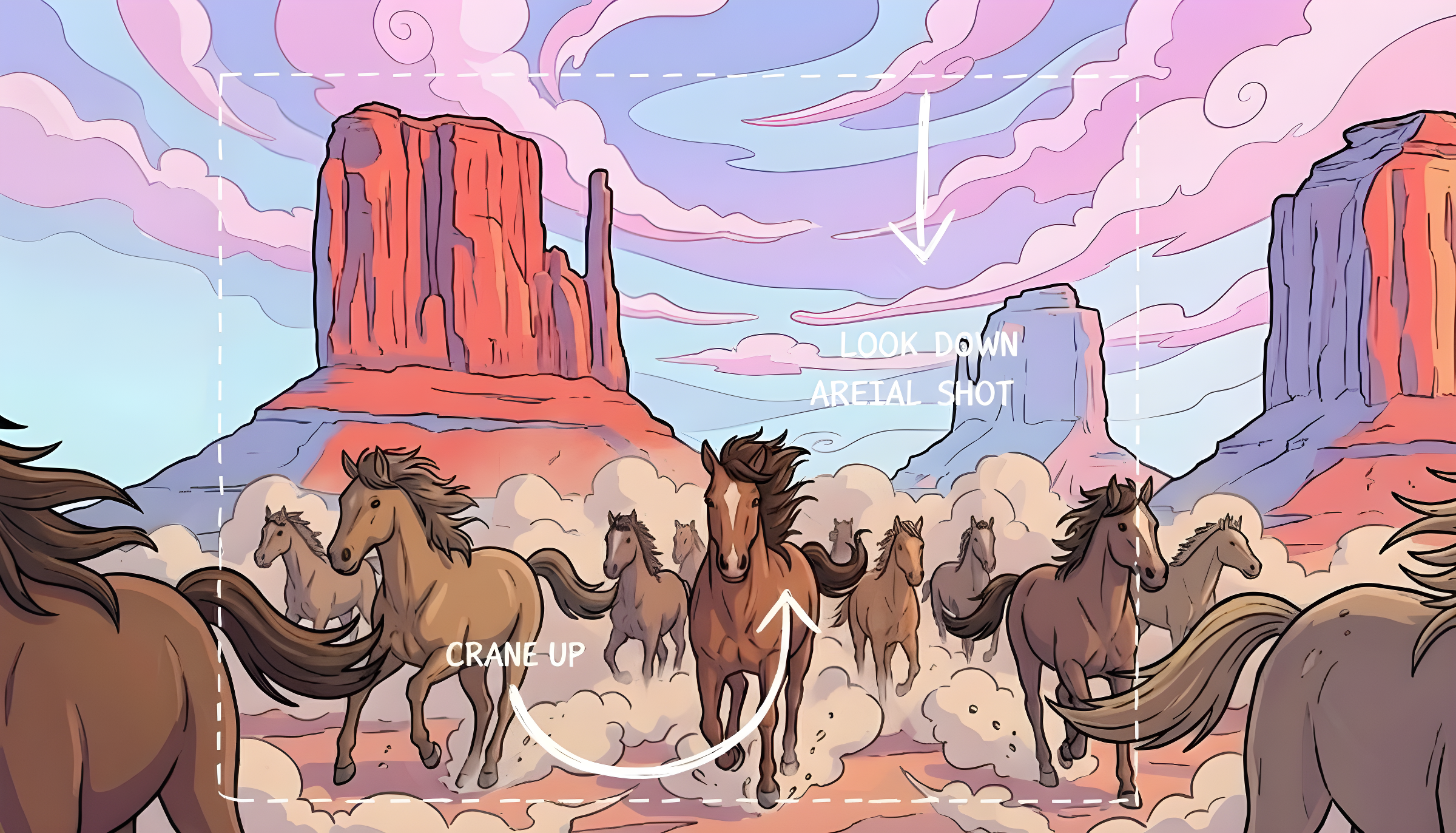 #aerial-shot#sketch#camera-movement#annotation#illustration