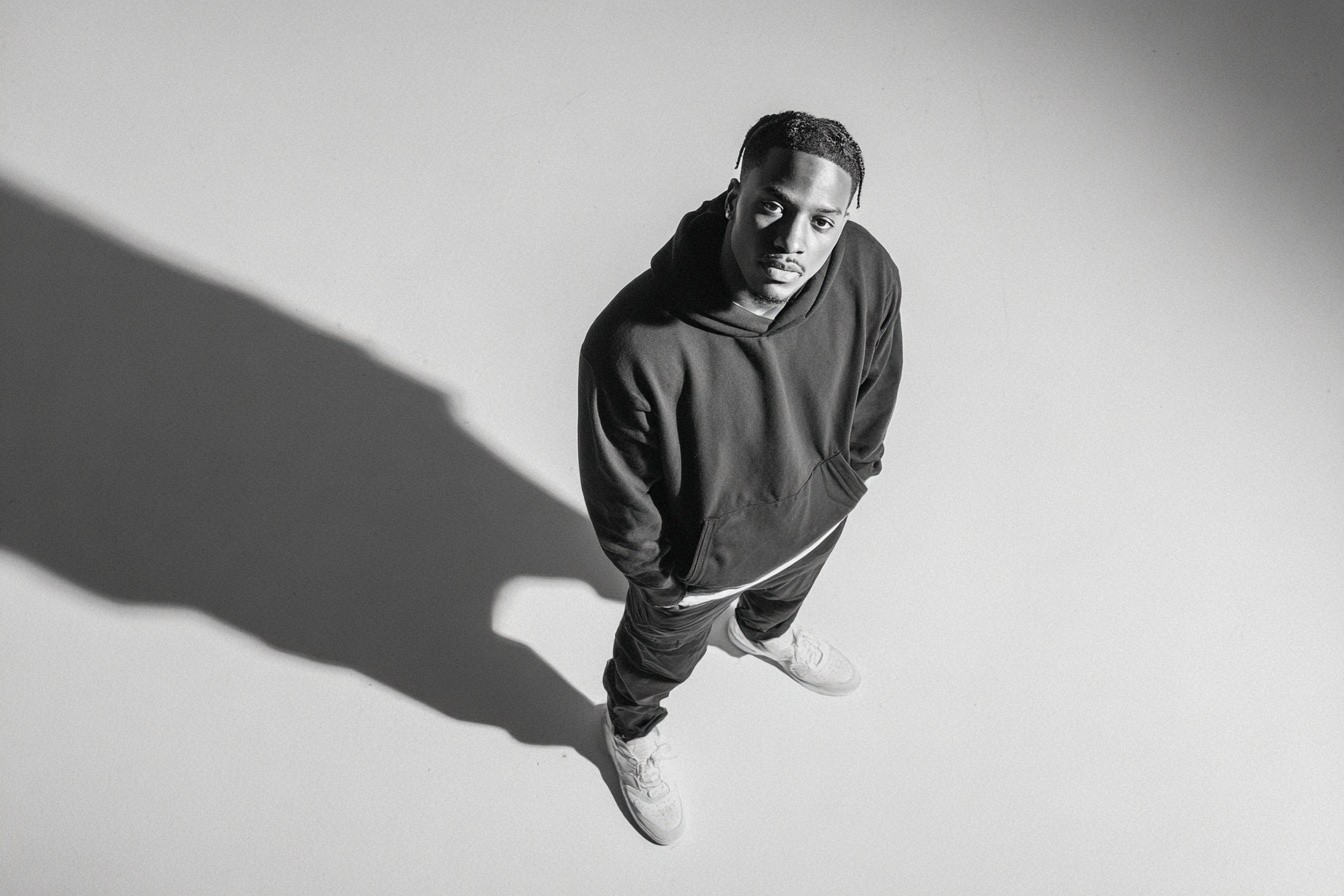 CopyA [subject] photographed from a 35-degree overhead angle, standing alone in an off-white studio void, with a confident pose and clean silhouette. Stylised proportions, sleek fashion styling, reflective textures, bold accessories, soft studio light, single beauty-dish flash casting crisp shadows, subtle Kodak Portra-inspired grain, candid editorial energy, minimalist composition, sharp detail, premium studio photography