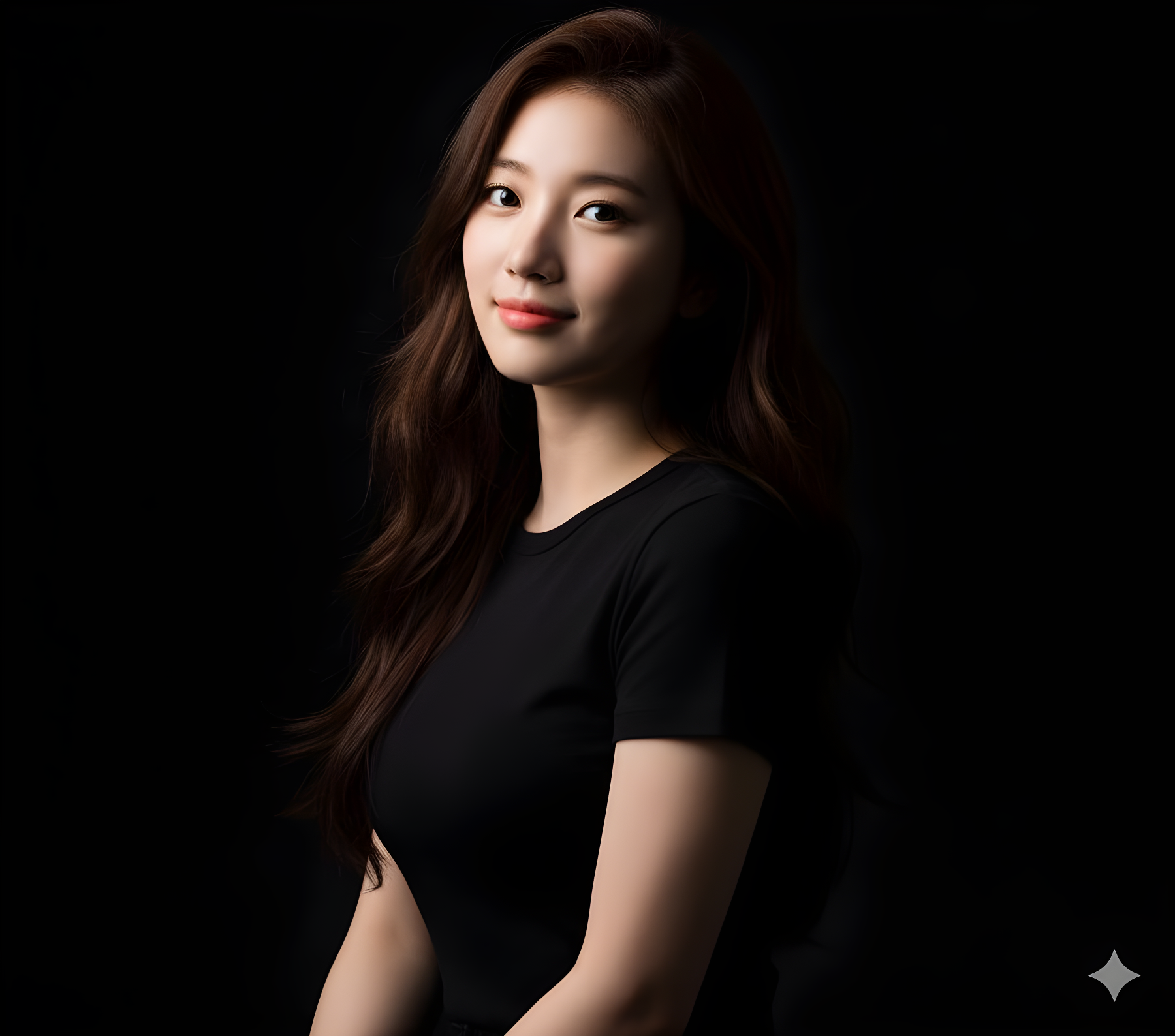 #portrait#studio-lighting#black-background#half-body#realistic