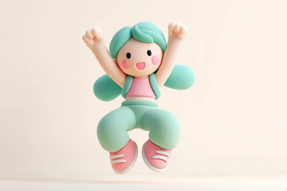 CopyCute 3D render of a [subject], matte surface, kneaded clay icon style, simple stylized design, [doing action], [emotion or mood], rounded proportions, soft sculpted details, playful body language, vibrant [color1], [color2], and [color3] accents, clean white background, minimal composition, soft ambient lighting, subtle shadow, charming character design, high-resolution, polished toy-like aesthetic