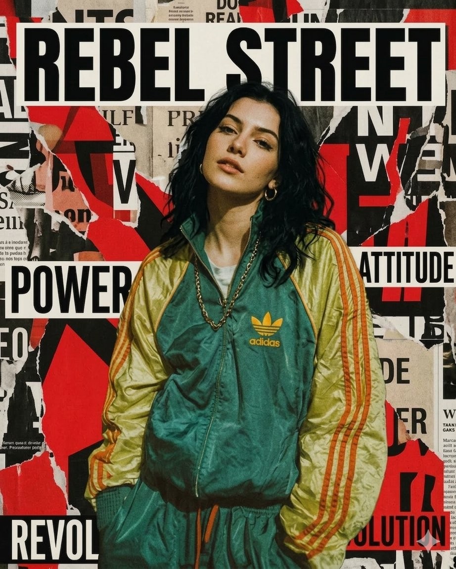 Rebel Street Torn Poster Retro Tracksuit Grunge Editorial Portrait