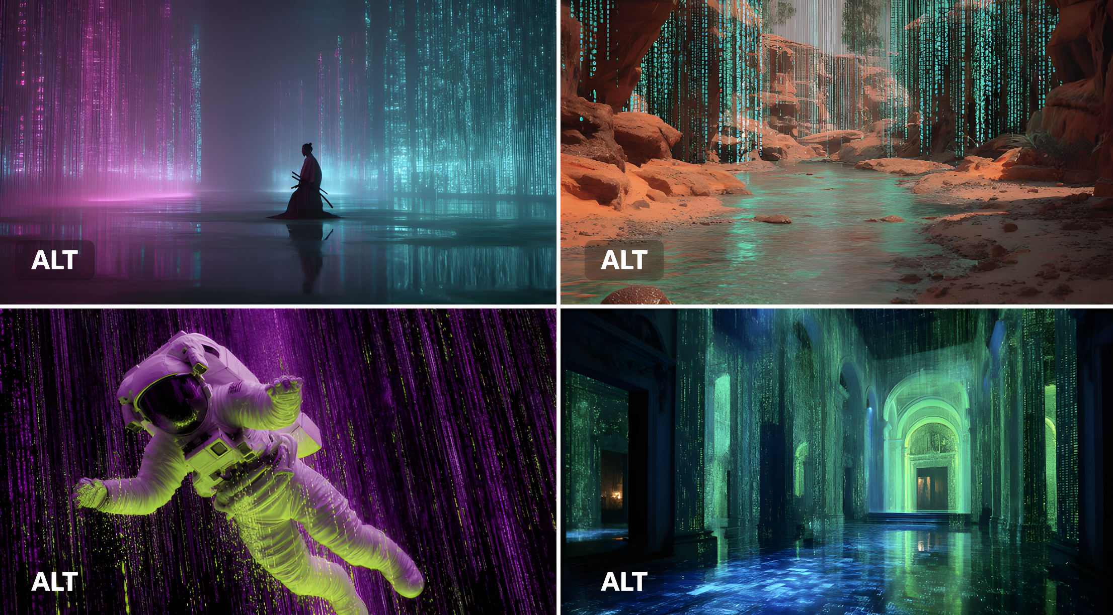 Copy[SUBJECT] reinterpreted through Cyber Matrix Dreamscapes, where cascading streams of digital code form the immersive backdrop. Imbue the scene with radical neon [COLOR1] and luminous [COLOR2] accents to evoke a futuristic reality where art converges with algorithm