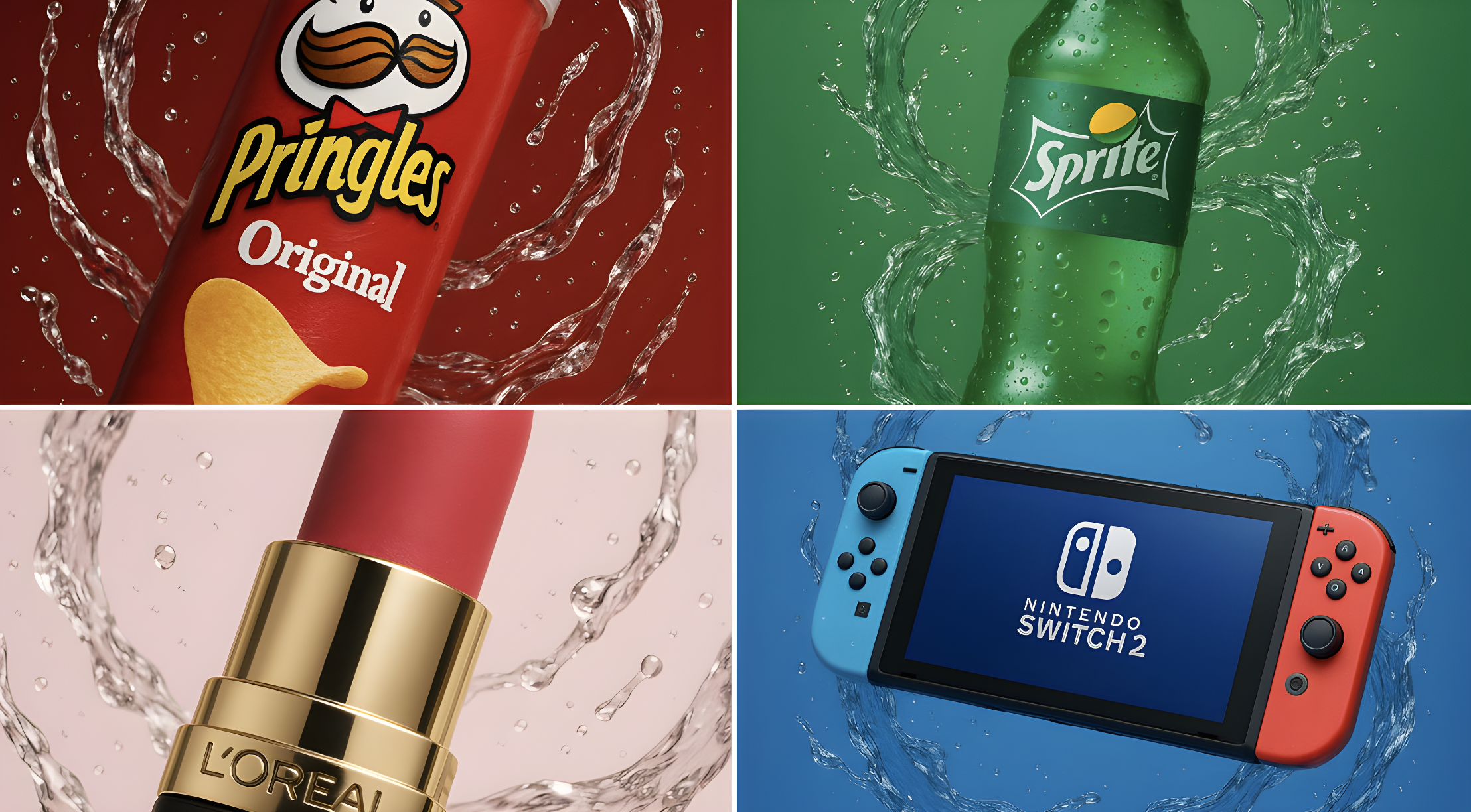 CopyCreate square image of studio-lit product photography of a [Product] suspended in mid-air, lots of thick dynamic water swirls surrounding it in slow-motion arcs, crystal-clear droplets glistening with light refraction, high-gloss finish, minimal backdrop, cinematic lighting with soft shadows and highlights, shot on a pure matching gradient background, ultra-realistic detail, commercial photography style, 85mm lens depth of field.