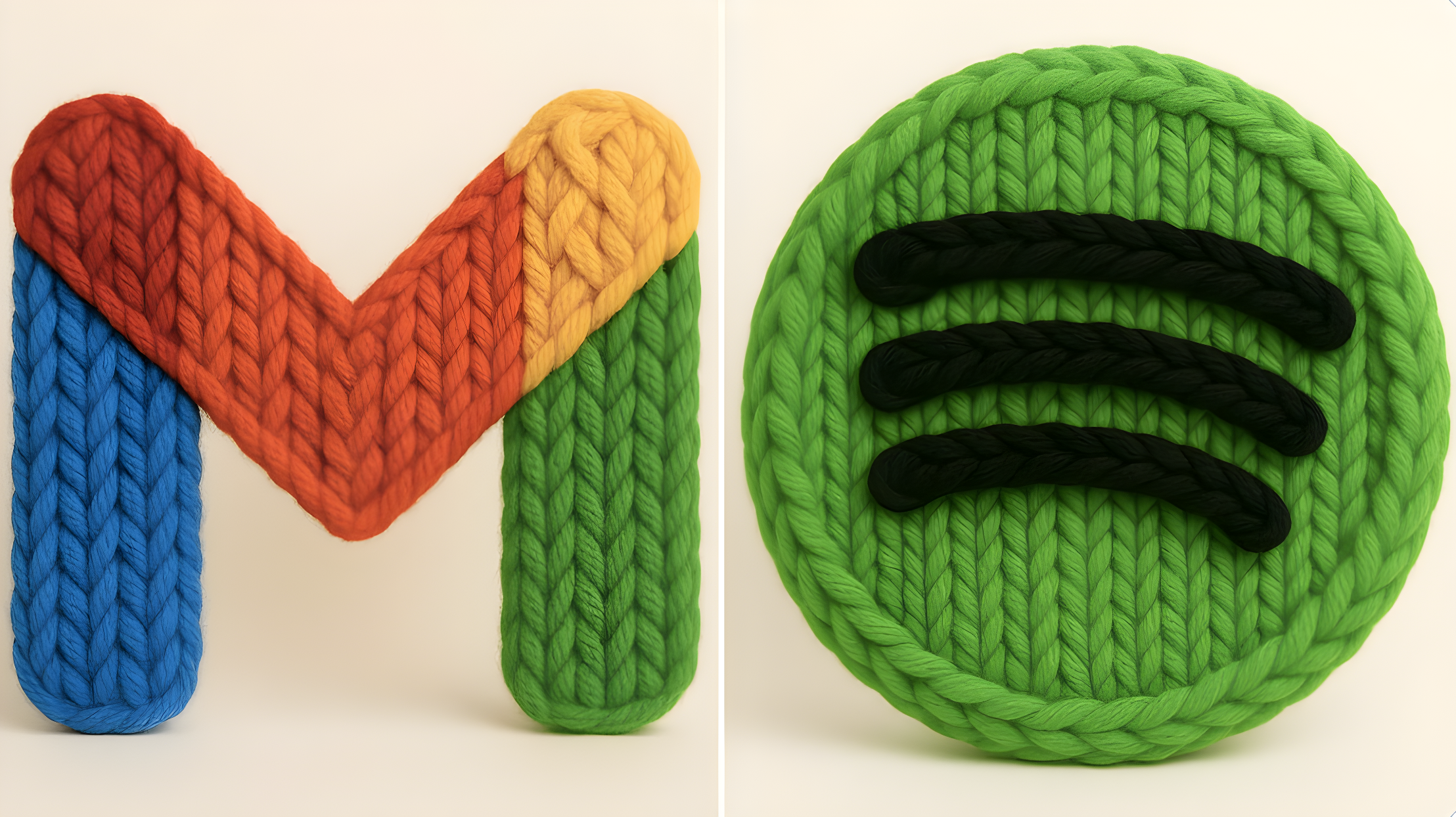 CopyCrea un render 3D fotorrealista de este logo hecho con hilo grueso y tejido a mano. El hilo debe parecer suave, esponjoso y de gran tamaño, con patrones visibles de tejido como bucles, giros y trenzas. Usa colores brillantes y saturados, estética cálida. Resalta la textura de las fibras, la suavidad del material y el acabado artesanal. Iluminación de estudio suave. Fondo blanco o crema limpio. El logo debe estar centrado y sin elementos adicionales. Cuadrado.
